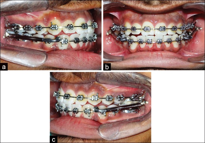 Orthodontic appliances represent foreign objects inserted in a physically and psychologically sensitive area of the body. An important factor in a person's decision to seek orthodontic treatment is the desire to improve dentofacial aesthetics, improvements in social life and self-confidence. [1],[2] Discomfort caused by orthodontic treatment may affect patient's compliance; satisfaction with treatment and it might lead to stress between patient and practitioner. [3],[4],[5] Class II malocclusions have been described as the most frequent treatment problem in orthodontic practice and as one of the more difficult orthodontic problems to treat. [6],[7] Combinations of dental and skeletal factors ranging from mild to severe provide the multiple characters of this discrepancy. [8],[9] Class II malocclusions can be treated by several means, according to the characteristics associated with the problem, such as anteroposterior discrepancy, age and patient compliance. [10] Methods include extraoral appliances, functional appliances and fixed appliances associated with Class II intermaxillary elastics. [6] On the other hand, correction of Class II malocclusions in non-growing patients usually includes orthognathic surgery or selective removal of permanent teeth, with subsequent dental camouflage to mask the skeletal discrepancy.