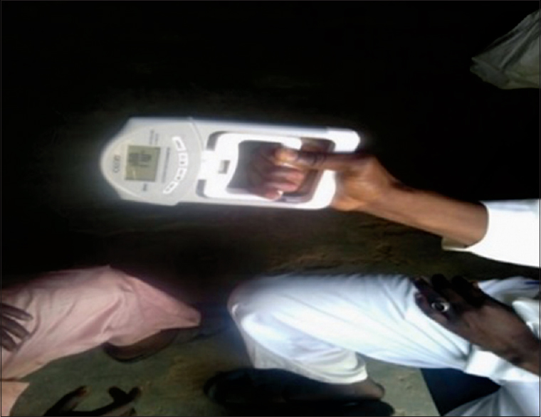 The right and left grip strength were measured using a digital hand grip dynamometer (Model EH101, Camry, China) at sitting position with shoulder adducted and neutrally rotated and elbow in semi-flex position [Figure 3]. The subjects were asked to put maximum force on the dynamometer. The value was recorded to the nearest 0.1 kg.