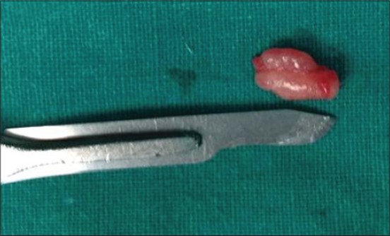 Histopathological examination confirmed a glomus tumor with vascular areas with multiple glomus bodies. Surgical wound healed by primary intention [Figure 6]. Patient's symptoms were relieved immediately after the surgery. The patient was asymptomatic 1 year after the surgery.